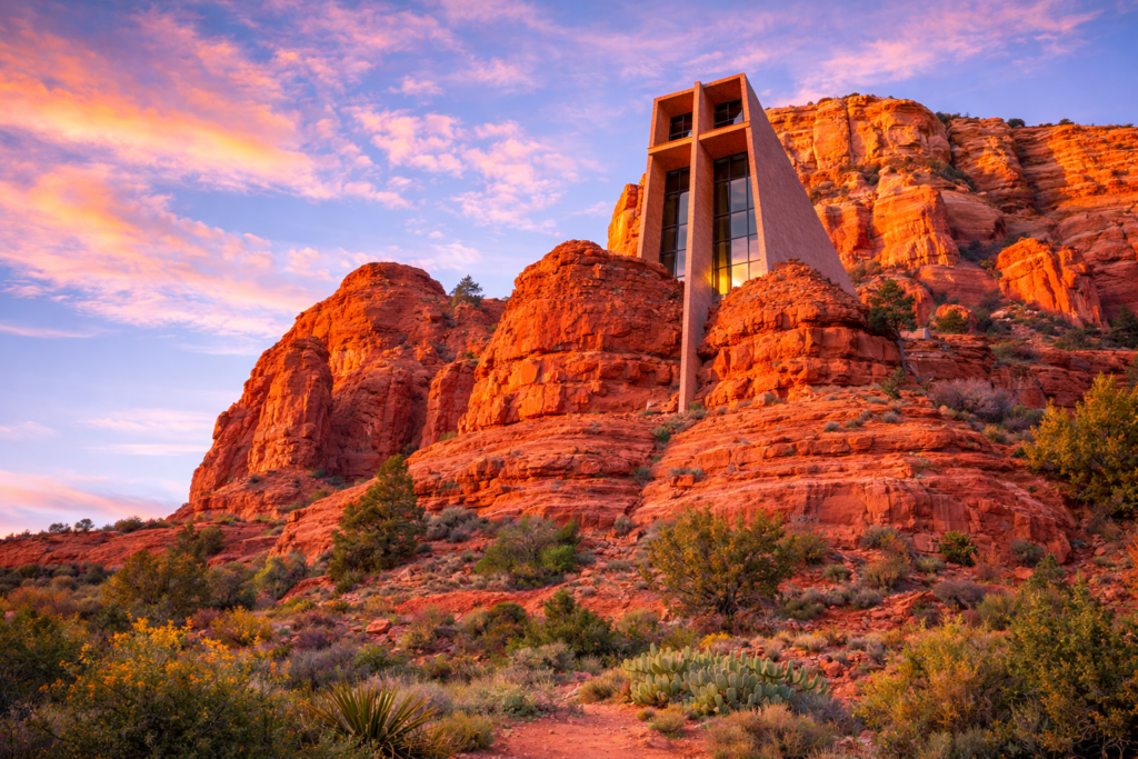 Built into the red rock cliffs, the Chapel of the Holy Cross is a spiritual and architectural landmark offering breathtaking views of the surrounding landscape.