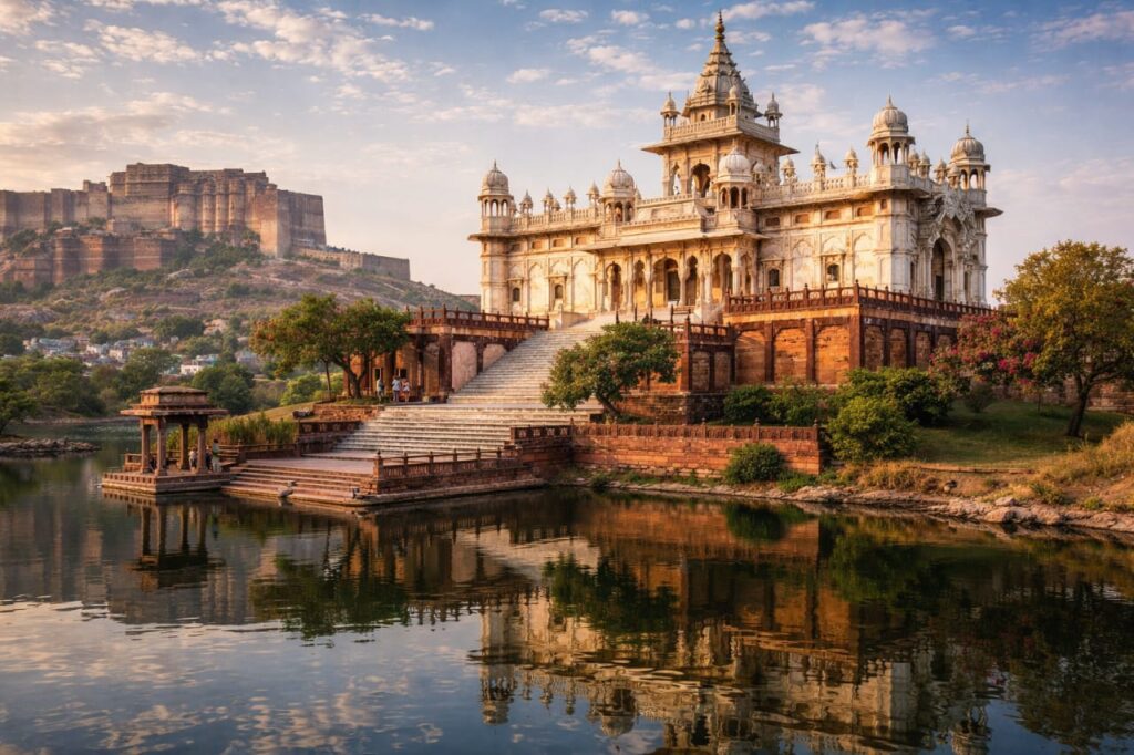 Jaswant Thada is a peaceful white marble memorial located near Mehrangarh Fort.